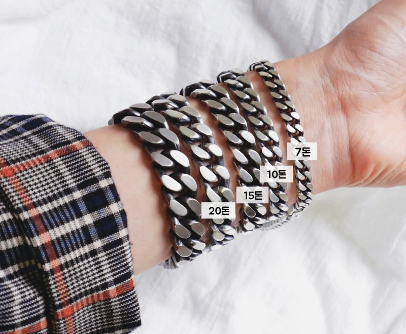 가장 보편적인 4면 커팅 체인팔찌로 체인 내부까지 꽉 찬 국내산 정품 실버만 사용하였습니다.